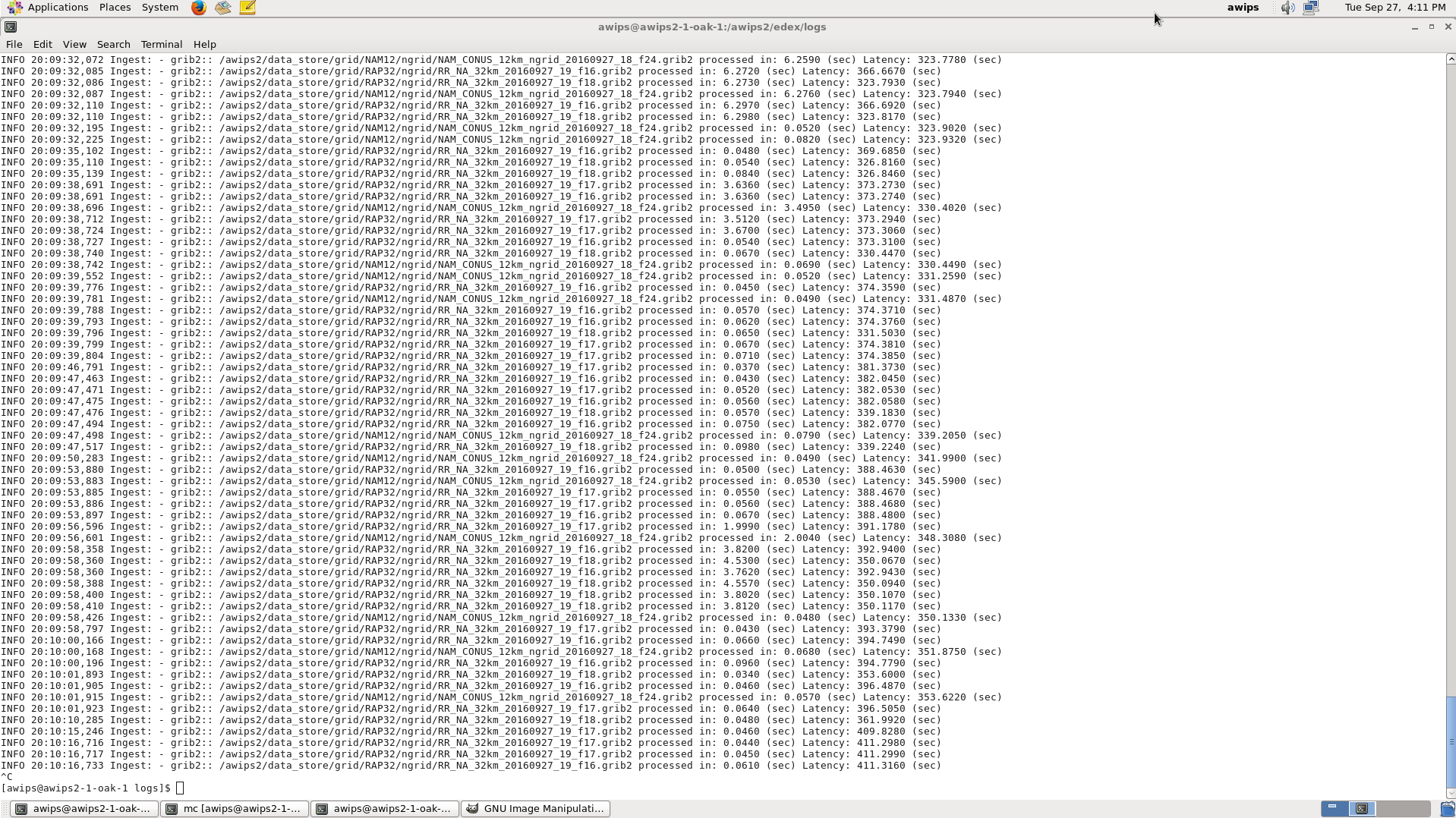 > Command I used: "tail -f edex-ingestGrib-20160927.log | grep -P "^INFO .+