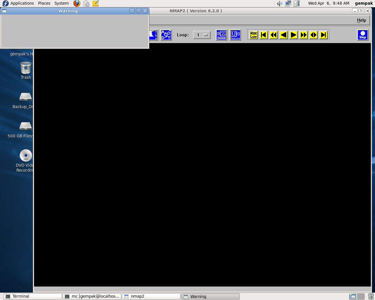 nmap2 from the command line I immediately get a dialog box that says
