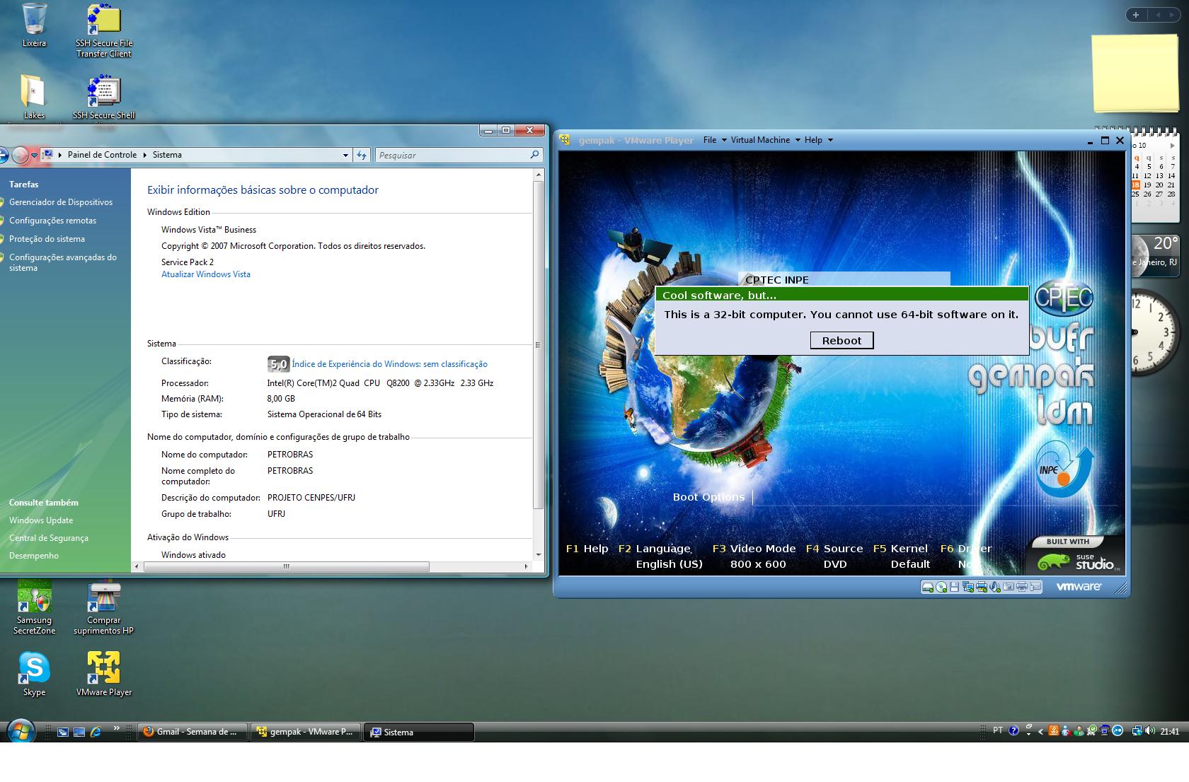 Boa Noite Sr Waldenio, Eu estava tentando instalar o arquivo que que o senhor indicou para eu baixar e instlar em uma maquina 64 bit usando o VMware. So que o programa esta dizendo que a maquina e 32 bit. Voce sabe me dizer aonde posso estar errando? vou enviar em anexo a conf. da minha maquina e o erro que esta dizendo o programa. Att, Marcos Em 18 de agosto de 2010 13:06, waldenio almeida < waldenio.almeida@xxxxxxxxxxxxx> escreveu: > Ótimo, boas notícias. > > Com o ISO que baixaste vc grava uma "imagem de DVD", criando um DVD > "bootable". Com ele vc instala o linux+tools nas máquinas. > > Para detalhes adicionais, mande e-mails para gadm@xxxxxxxxxxxxx ou mesmo > para a lista do idd-brasil@xxxxxxxxxxxxxxxx. Assim a equipe do CPTEC > poderá ajudá-lo com as dúvidas. > > abs, > > Waldenio. > > > Semana de Meteorologia UFRJ wrote: > >> Bom dia waldenio, >> >> conseguimios um laboratorio com maquinas com 64 bits. Estamos montando >> hoje a maquina virtual para podermos instalar o GEMPAK. O que não entedemos >> e o que fazer com os arquivos que baixamos? >> Vc teria um passo a passo para me enviar? >> >> >> Abs, >> >> William >> Em 18 de agosto de 2010 07:20, waldenio almeida < >> waldenio.almeida@xxxxxxxxxxxxx <mailto:waldenio.almeida@xxxxxxxxxxxxx>> >> escreveu: >> >> >> William, >> >> Infelizmente não temos um ISO para máquinas de 32 bits. Como não >> temos mais máquinas de 32 bits aqui, não tivemos como fazer e >> testar o sistema para 32 bits. >> >> Não há nenhuma máquina de 64 bits disponível por aí ? Para >> demonstrações vc só precisa instalar o sistema em uma. Os demais >> podem acessar via "ssh -x". O desempenho fica prejudicado, mas >> para uma demonstração com poucos usuários normalmente funciona.... >> >> >> Waldenio. >> >> >> Semana de Meteorologia UFRJ wrote: >> >> Professor Waldenio, >> seria possivel você enviar esse arquivo para maquina de 32 bits? >> >> William >> >> Em 15 de agosto de 2010 13:27, Semana de Meteorologia UFRJ >> <semanameteoro@xxxxxxxxx <mailto:semanameteoro@xxxxxxxxx> >> <mailto:semanameteoro@xxxxxxxxx >> >> <mailto:semanameteoro@xxxxxxxxx>>> escreveu: >> >> >> >> >> ---------- Mensagem encaminhada ---------- >> De: *waldenio almeida* <waldenio.almeida@xxxxxxxxxxxxx >> <mailto:waldenio.almeida@xxxxxxxxxxxxx> >> <mailto:waldenio.almeida@xxxxxxxxxxxxx >> <mailto:waldenio.almeida@xxxxxxxxxxxxx>>> >> >> Data: 15 de agosto de 2010 19:52 >> Assunto: Semana de Meteorologia UFRJ - Re: Ajuda GEMPAK >> Para: Semana de Meteorologia UFRJ <semanameteoro@xxxxxxxxx >> <mailto:semanameteoro@xxxxxxxxx> >> <mailto:semanameteoro@xxxxxxxxx >> >> <mailto:semanameteoro@xxxxxxxxx>>> >> Cc: gadm <gadm@xxxxxxxxxxxxx <mailto:gadm@xxxxxxxxxxxxx> >> <mailto:gadm@xxxxxxxxxxxxx <mailto:gadm@xxxxxxxxxxxxx>>>, Flávia >> >> Rodrigues <flaviameteoro@xxxxxxxxx >> <mailto:flaviameteoro@xxxxxxxxx> >> <mailto:flaviameteoro@xxxxxxxxx >> >> <mailto:flaviameteoro@xxxxxxxxx>>> >> >> >> >> >> Prezado William, >> >> Acho muito importante divulgar essa solução para os >> estudantes da >> UFRJ, e parabenizo-o pela iniciativa. >> >> Apoiarei no que for possível, mas infelizmente, este mês a >> minha >> agenda está realmente sobrecarregada. Ainda assim, eu >> poderia dar >> algum apoio no dia 23/08, na parte da tarde. Não devo estar na >> UFRJ antes disso, e só poderei ficar na meteorologia por >> umas 2 ou >> 3 horas. >> >> Assim, para agilizar o trabalho, visto que há pouco tempo, >> sugiro >> que seja feito o seguinte: >> >> - faça o download do ISO do linux+tools >> (CPTEC_INPE.x86_64-1.0.0.iso >> < >> http://downloads.cptec.inpe.br/publicacoes/download?idv=216>) da >> página do CPTEC. Com ele vc poderá instalar rapidamente o >> sistema >> numa máquina de 64 bits. Isso teria que ser feito nesta semana. >> >> - P.S.: Pelo menos o download dos dados deve ser acertado esta >> semana. Normalmente há problemas de firewall e >> assemelhados, o que >> pode ser resolvido por e-mail. >> >> - Com o sistema funcionando em pelo menos um servidor, na >> segunda >> (23/08) eu poderei fazer algumas verificações, >> configurações e/ou >> acertos, ou mesmo tirar algumas dúvidas a tempo do curso que >> começaria na terça, dia 24. >> >> Infelizmente não estarei no Rio durante o curso, pois tenho que >> dar uma palestra/curso sobre o GEMPAK num evento em Passa >> Quatro, >> no dia 26/08. Totavia, deixarei contigo e com a flávia as >> apresentações que tenho sobre o gempak. >> >> Mande os futuros e-mails para gadm@xxxxxxxxxxxxx >> <mailto:gadm@xxxxxxxxxxxxx> >> <mailto:gadm@xxxxxxxxxxxxx <mailto:gadm@xxxxxxxxxxxxx>>. >> >> Assim a equipe do pré-processamento >> >> poderá apoiá-lo nas dificuldades. Eu também receberei os >> e-mails. >> >> Abs, >> Waldenio. >> >> >> >> Semana de Meteorologia UFRJ wrote: >> >> Prezado Sr. Waldenio, boa tarde. >> Eu sou William Cossich, aluno de mestrado da >> COPPE-UFRJ e um >> dos organizadores da */Semana de Meteorologia da UFRJ >> 2010: A >> Ciência auxiliando a sociedade >> /*(*/ >> http://sites.google.com/site/semanademeteorologiadaufrj/)/**/<http://sites.google.com/site/semanademeteorologiadaufrj/%29/**/> >> <http://sites.google.com/site/semanademeteorologiadaufrj/%29/**/> >> < >> http://sites.google.com/site/semanademeteorologiadaufrj/%29/**/>. >> >> >> /* >> *//* A Semana de Meteorologia é um evento de grande >> importância para o curso de Meteorologia da UFRJ, e tem >> como >> principais objetivos objetivos promover o intercâmbio >> entre os >> mais diversos membros da comunidade Meteorológica; oferecer >> oportunidades para os alunos desenvolverem seus >> conhecimentos >> acadêmicos e científicos; reunir em uma mesma semana >> diversas >> áreas diferentes, proporcionando a >> interdisciplinaridade; além >> promover a integração entre universidades e cursos >> designados >> ao tema proposto. >> Durante o evento será oferecido um mini-curso de >> */GEMPAK/*, >> ministrado pela oficial *Flavia Rodrigues Pinheiro* da >>