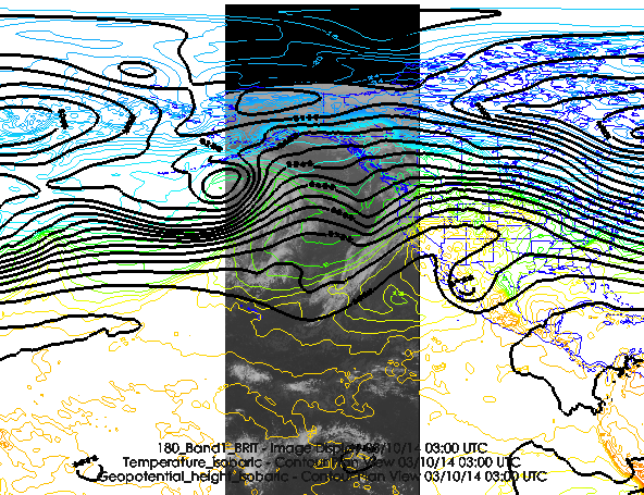 3. I tried switching between projections, which I hope to do a lot. Usually it worked well. Situations where the projection crossed the 0 or 180 meridian sometimes did weird things (attached are examples). These used the gfs time matched to global satellite imagery.