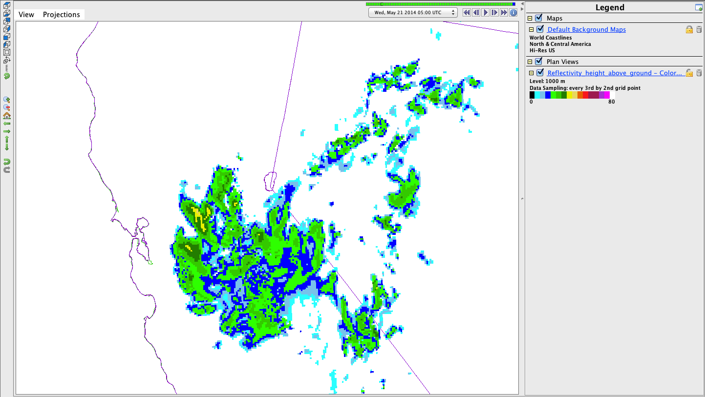 One item: it seems the Legend does not update the resolution when one rubber-bands into an area of interest ... e.g. I loaded the HRRR forecast radar reflectivity over CONUS and it is displayed with a skip of 2x3 points. Then I zoomed in over California ... data is now sampled at every grid point (attached is a graphic). Yet the legend still shows 2x3. Perhaps the legend label could update to reflect the new resolution? _____________________________________________ Kevin Tyle, Systems Administrator Dept. of Atmospheric & Environmental Sciences University at Albany Earth Science 235, 1400 Washington Avenue Albany, NY 12222 Email: ktyle@xxxxxxxxxx Phone: 518-442-4578 _____________________________________________ ________________________________________ From: idvdevelopers-bounces@xxxxxxxxxxxxxxxx <idvdevelopers-bounces@xxxxxxxxxxxxxxxx> on behalf of Yuan Ho <yuanho@xxxxxxxxxxxxxxxx> Sent: Monday, May 19, 2014 11:48 AM To: idvdevelopers@xxxxxxxxxxxxxxxx Subject: [idvdevelopers] 5.0 release plan Hi All, I am planning to do the document this week, and more testing. It is in my plan to have this release sometime next week. Please check in the any changes asap and update the release note. Thanks, Yuan _______________________________________________ idvdevelopers mailing list idvdevelopers@xxxxxxxxxxxxxxxx For list information, to unsubscribe, visit: http://www.unidata.ucar.edu/mailing_lists/