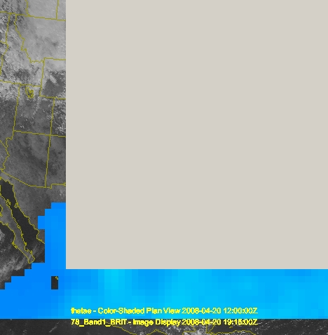 Hi Dan -- I assume from your description that you tried to do a "change range" on the theta-e plot. In my example, the original range was 250-420K.....so perhaps you just tried changing the range to something like 310-420K or something? The behaviour of this is that it then treats all values from 250-309 as if there were equal to 310, for the purpose of mapping from the data to the color table. The way I know of to accomplish this is to edit the color table, click on the "Transparency" radio button, set the transparency to 100%, and then grab the slider above the "250" and drag it to the right (you should see black/white checkboard pattern). You will then get something like the attached (I hope) image. Hope that helps... tom On Sun, Apr 20, 2008 at 12:42 PM, Dan Grey <dangrey@xxxxxxxxx> wrote: > I've got a sat pic (from a server under "Images") on the surface, and > a colour-shaded plot of theta-e at 850 hPa from the GFS above. I > restrict the visible range of the theta-e to a value so only areas > above a certain value are shown (to illustrate a plume event). However > areas with theta-e below my range appear black, rather than showing > through the sat pic below. > > Am I missing something simple, is this is intended behaviour, or is it a bug? > > > Dan > _______________________________________________ > idvusers mailing list > idvusers@xxxxxxxxxxxxxxxx > For list information, to unsubscribe, visit: > http://www.unidata.ucar.edu/mailing_lists/ > -- Tom Whittaker University of Wisconsin-Madison Space Science & Engineering Center (SSEC) Cooperative Institute for Meteorological Satellite Studies (CIMSS) 1225 W. Dayton Street Madison, WI 53706 USA ph: +1 608 262 2759