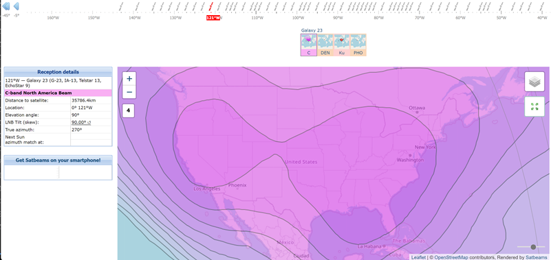 according to the footprint map you should be fine: linked here: https://www.satbeams.com/footprints?position=239 ..