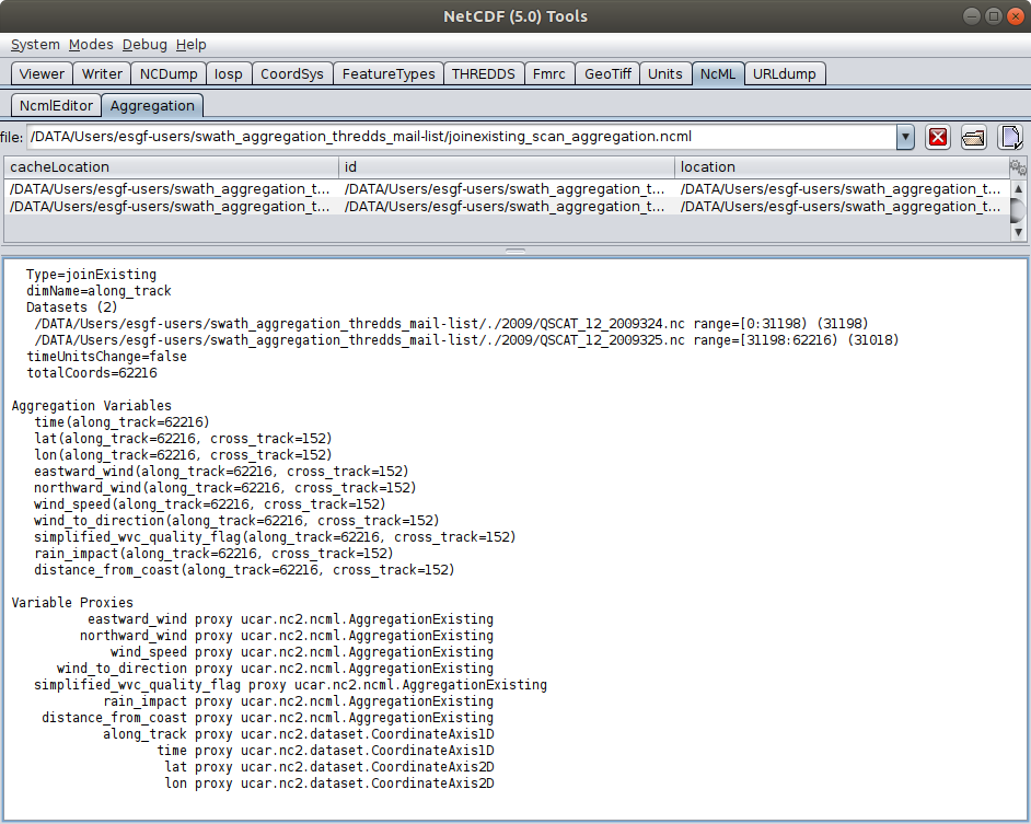 - Subject: Re: [thredds] ncml/THREDDS Aggregation of Swath Data follow up