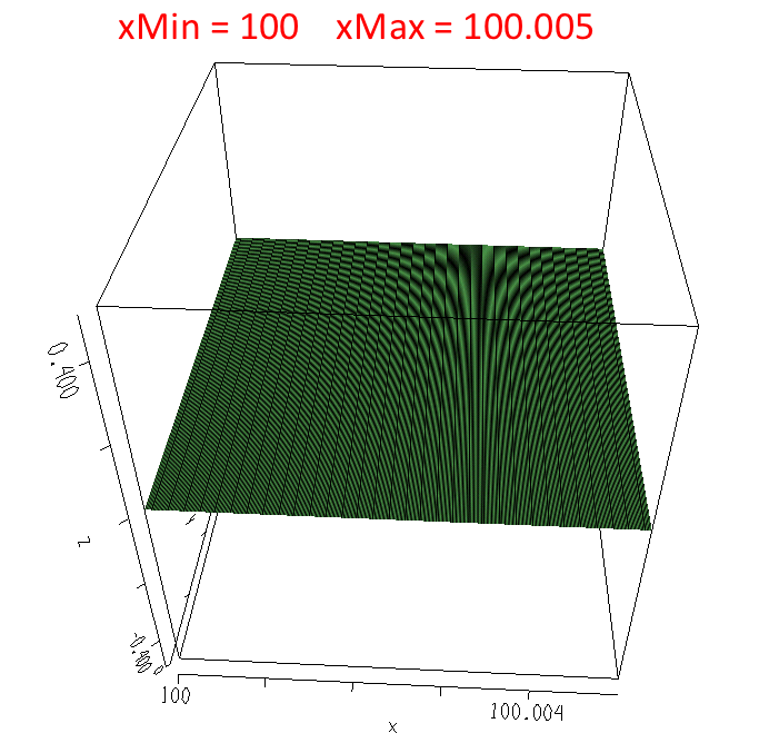 Dear VisAD developers, We are using VisAD for the visualization of mass spectrometry data as part of the MZmine 2 framework (http://mzmine.sourceforge.net/). I found that sometimes the visualization is affected by the range of the axes. When visualizing a narrow range of data, the plot shows some strange artefacts such as lines. After a bit of debugging, I managed to write a short Java program that demonstrates the issue (attached as VisadTest.java) The program creates a simple Linear2DSet of 1000 x 1000 dimension. The Z values are set to zero for the whole domain, therefore the visualization only shows a flat plane. The strange thing is that depending on the range of the X axis, the visualization is different (note that the resolution of the Linear2DSet stays constant). The range of the X axis is defined in the program here: double xMin = 100; double xMax = 100.007; I have attached screenshots demonstrating the VisAD behavior as I change the range of the X axis from 100-100.5 to 100-100.0005. Finer ranges show some strange patterns instead of solid color. Is this behavior normal? I believe the visualization should be exactly the same except the X axis label. Is this a bug of VisAD? Best regards, Tomas PS: I am using the latest VisAD (Thu Mar 22 13:01:31 CDT 2012 Rev:5952), running Java 1.6.0_31 on Mac OS X 10.7.4. =============================================== Tomáš Pluskal G0 Cell Unit, Okinawa Institute of Science and Technology Graduate University 1919-1 Tancha, Onna-son, Okinawa 904-0495, Japan TEL: +81-98-966-8684 Fax: +81-98-966-2890