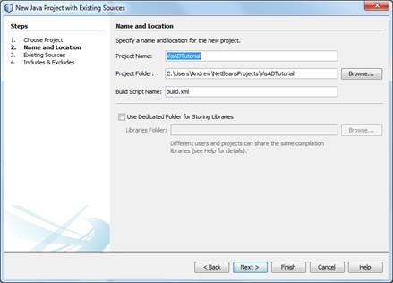Thank you for the encouragement and help I have received in getting started with NetBeans and VisAD. I am pleased to report that I have been successful. However there were a lot more mis-steps than I expected. This was mostly about NetBeans and less about VisAD. I'm a newbie with NetBeans but heck I used to make a living from programming (I'm now a geophysicist) and if it takes me this long then I figured other people maybe have a few stumbles as well. So as a thank you to the community I wrote a little 7-step guide to getting started with NetBeans and VisAD for complete beginners. I'm not certain how "rich" a message this mail-list and the archive will support but I'm attaching it as a Word document and also pasting it in below. All errors are mine. I'd be happy to receive feedback and suggestions, including if there is somewhere that it would be appropriate to post this online. Many thanks, Andy A Beginners Guide to Getting Started WithVisAD and NetBeans 23rd March 2013 andy@xxxxxxxxxxxxxxxxxx<mailto:andy@xxxxxxxxxxxxxxxxxx> working on Windows7 SP1 32-bit A seven step guide aimed at first-time users of NetBeans attempting to compile and run Ugo Taddei's VisAD tutorials. This will also be useful for anyone attempting to use NetBeans for the first time to work on some existing Java code and application libraries. Step 1: Download and Install NetBeans Download the NetBeans IDE from http://netbeans.org/downloads/ I downloaded the Java SE download bundle for NetBeans version 7.3 Step 2: Download VisAD Download the file ftp://ftp.ssec.wisc.edu/pub/visad-2.0/visad.jar I saved this into C:\Programe Files\Java\VisAD\visad.jar Step 3: Download and Unpack Ugo Taddei's VisAD Tutorial Download the file http://www.ssec.wisc.edu/~billh/vistutor.jar I then used the 7zip program, available from here, http://sourceforge.net/projects/sevenzip/, to unpack this file into C:\Users\Andrew\VisAD\UgoTutorial Step 4: Launch NetBeans and Create a New Project Launch NetBeans and from the main menu select File > New Project. In the New Project dialog choose a project category of Java Project with Existing Sources [cid:image001.jpg@01CE28D1.6852B610] I chose to call my new project VisADTutorial [cid:image002.jpg@01CE28D1.6852B610] Then I selected the folder where I had extracted the source code for the tutorial examples. The tutorials are pre-compiled and the .class files are in the same directories. NetBeans will offer to delete these and recompile - accept this option to delete. [cid:image003.jpg@01CE28D1.6852B610] [cid:image004.jpg@01CE28D1.6852B610] Step 6: Tell NetBeans Where to Find the VisAD Library We now have a new NetBeans project but it won't compile because it can't find the VisAD classes. In the NetBeans Project tree right click on the Libraries folder and select Add JAR/Folder. Navigate to wherever you saved the visad.jar file from step 2 and then select it. [cid:image005.jpg@01CE28D1.6852B610] [cid:image006.jpg@01CE28D1.6852B610] Step 7: Compile and Run The Tutorials In the the NetBeans Project tree in the Source Packages folder browse to find the java source file for the tutorial that you want to run, right click on it and select run. NetBeans will compile and run the program.